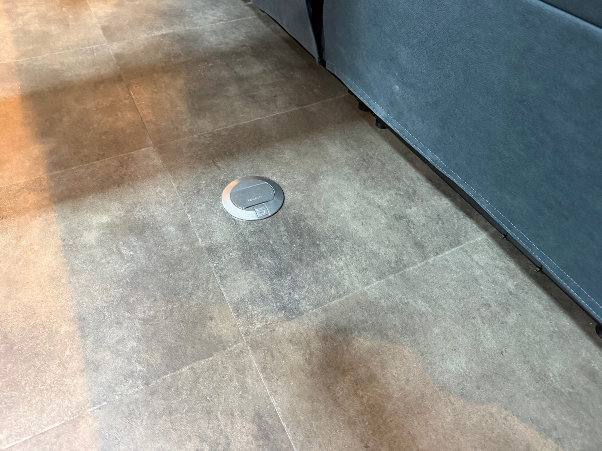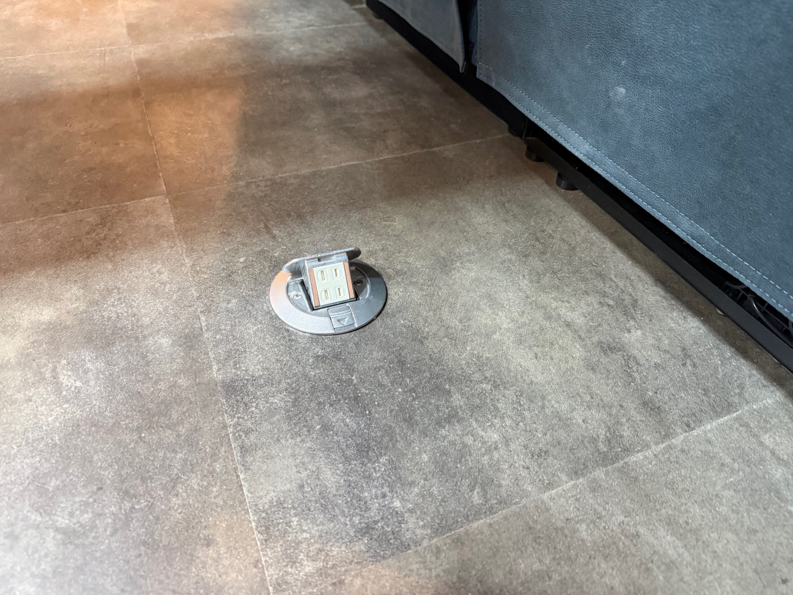 ソファーの下に床用コンセントを