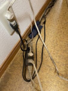大型家電で使うには延長コードが細く、一つのコードから繋ぎすぎてます!